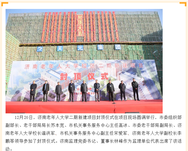匠心傾注 喜封金頂——我公司監(jiān)理的濟(jì)南老年人大學(xué)二期新建項(xiàng)目及霍邱縣第一人民醫(yī)院新院區(qū)項(xiàng)目順利封頂